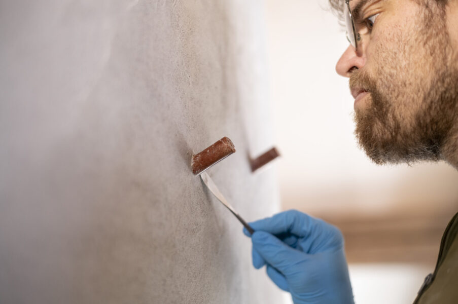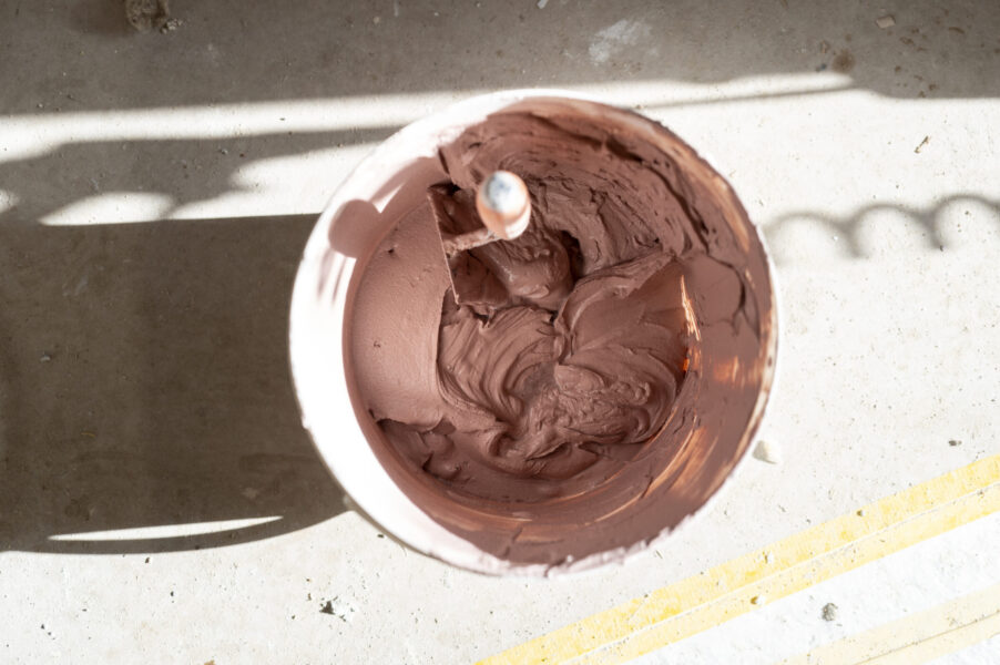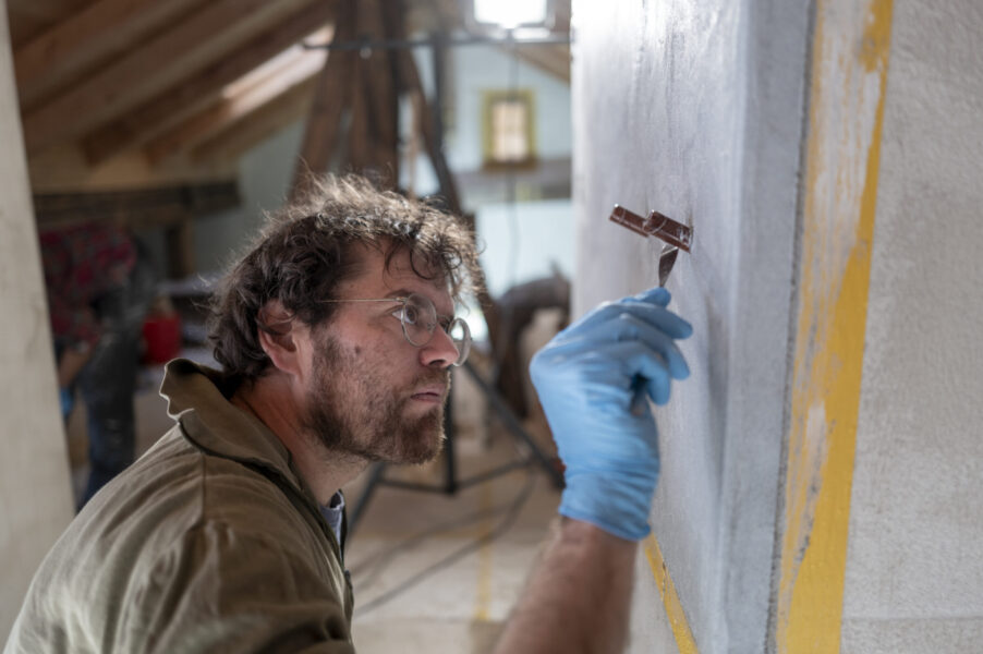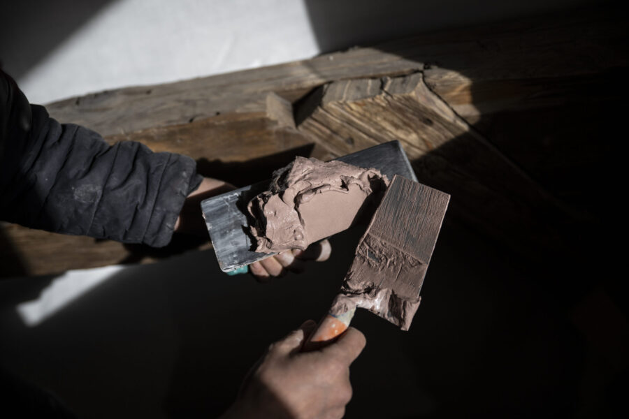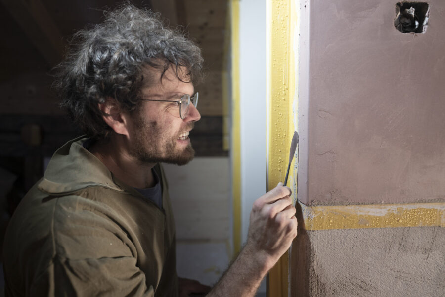 In seiner Berufstätigkeit nach der Maurerlehre haben ihn bei Arbeiten an alten Häusern immer wieder bemerkt, dass der alte Mörtel anders ist als der neue – weicher, poröser und von schönerem Farbton. Verschiedene Kurse zum Thema Kalk und Aufenthalte bei spezialisierten Betrieben, eine Weiterbildung zum Steinhauer in Peccia und das stetige Tüfteln mit eigenen Baumaterialien haben sein Wissen erweitert. Heute kann er mit seinen eigenen Materialien den Bedürfnissen angepasst und kreativ arbeiten, so dass jede Wand, jede Arbeit zum Unikat wird. Etwas, was mit industriellen Massenprodukten nicht denkbar wäre.