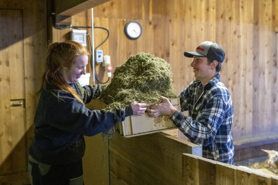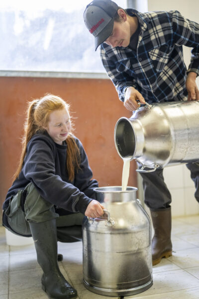 Als wäre es erst gestern gewesen: Ursina und Andri Caviezel zügeln mit ihren Schafen vom alten Stall in Tschlin in den neugebauten Gemeinschaftsstall unterhalb der Gemeinde, bei der Abzweigung zum Schlittelweg nach Chaflur. Sie hatten die einzigen Milchschafe im Engadin und gehörten mit ihrem Betrieb und der engen Zusammenarbeit mit der Käserei Che Chaschöl zu den ersten Bun Tschlin-Mitgliedern. Seitdem sind 20 Jahre vergangen und die zweite Generation übernimmt das Zepter bei Bun Tschlin.